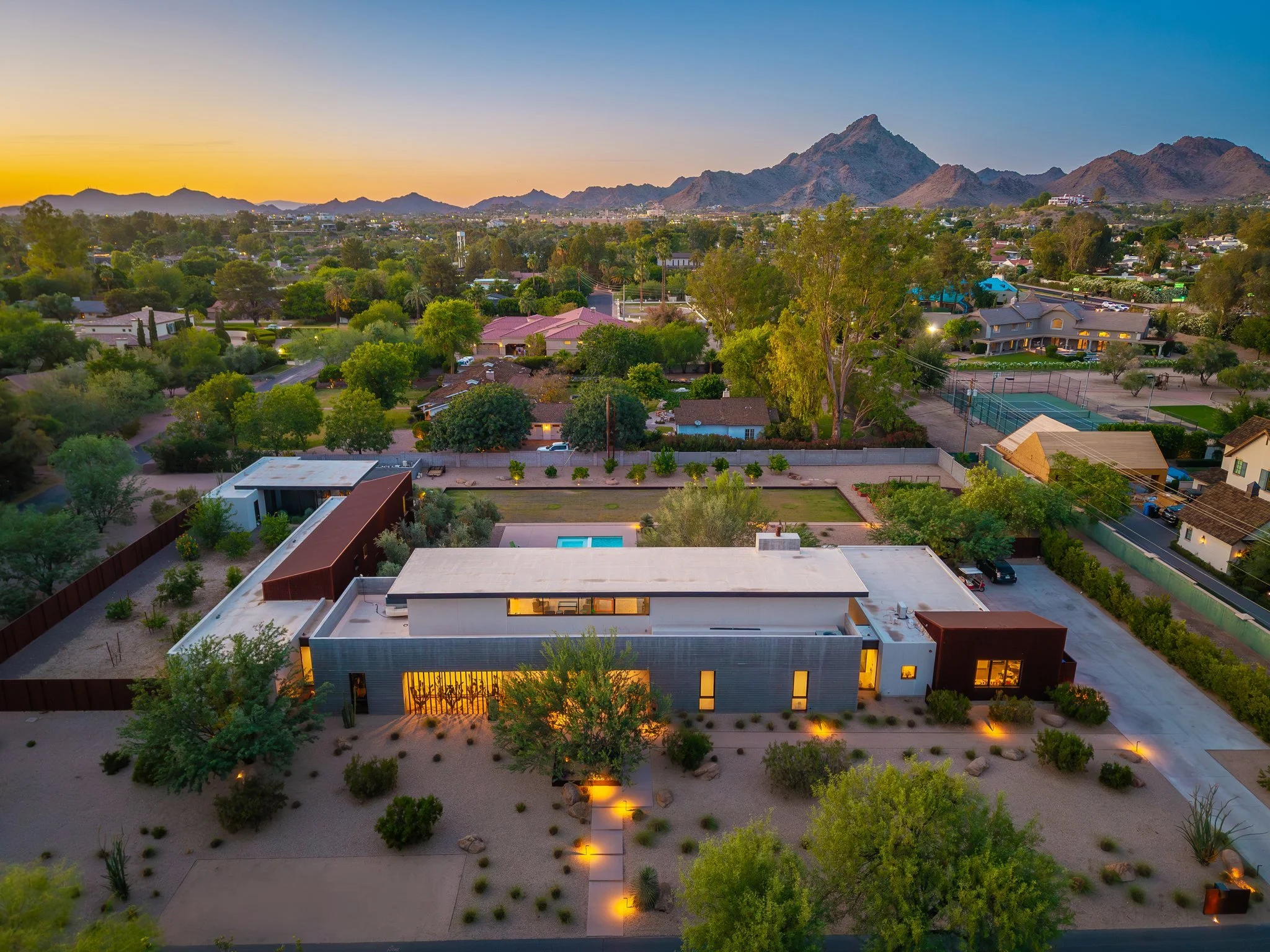 A desert modern residence spanning over 6,000+ sq.ft designed by The Ranch Mine with over 1+ acre near the Biltmore with landscaping by The Green Room Landscape Architecture.